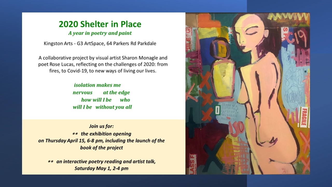 I would also like to announce an exhibition of conversations in poetry and paint, 2020 Shelter in Place, and invite you to attend one or both of our events: